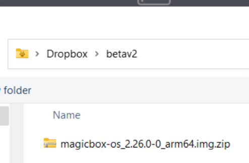 5. Open the BalenaEtched and Click on Flash from File, select the magicbox-os_2.XX.0-0_arm64.img.zip file downloaded the previous step